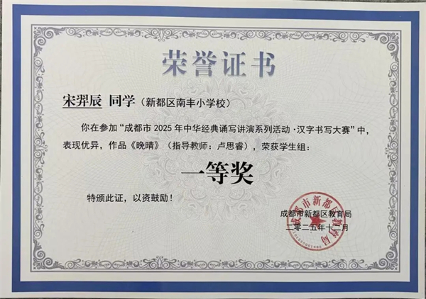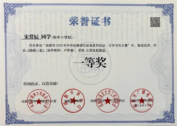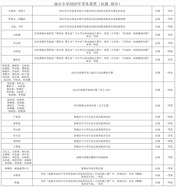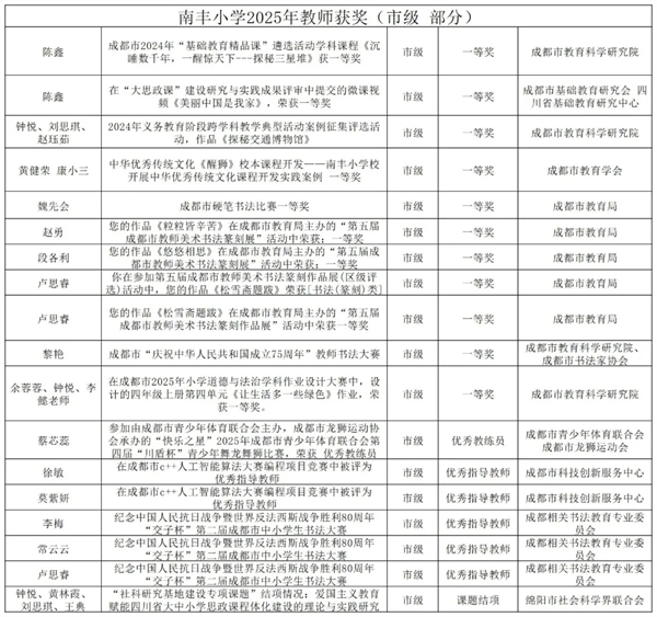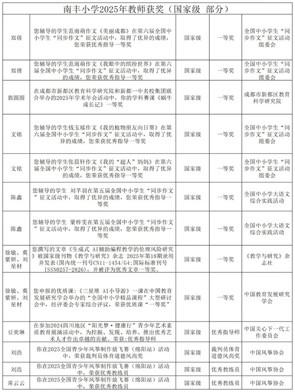 春播希望,夏绽芳华,秋收硕果,冬藏底蕴。2025年的南丰小学,以四季为轴,串联起荣誉与成长,以诗意为魂,书写着温暖与精彩。每一项奖项都是时光的馈赠,每一场活动都是成长的印记。2026年,南丰小学将继续循着四季的节律,深耕诗意教育,笃行致远之路,为师生搭建更广阔的成长舞台,让每一颗梦想的种子都能在这片沃土上生根发芽,绽放出更加绚烂的光彩,书写教育高质量发展的精彩华章!(江蕾 黄雪)