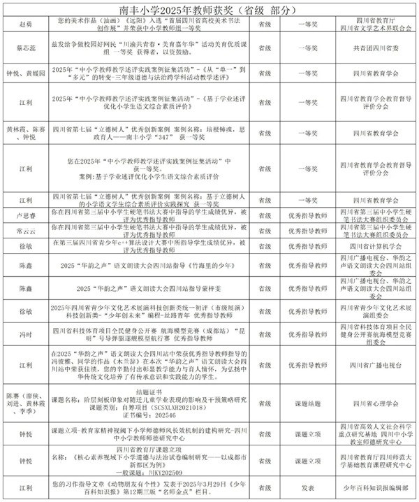 三尺讲台守初心,诗意执教育桃李。南丰小学教师以“灵活多元 协作共享”为教风,在专业成长路上步履不停,全年累计获奖546项!其中国家级28项、省级24项、市级70项、区级294项。