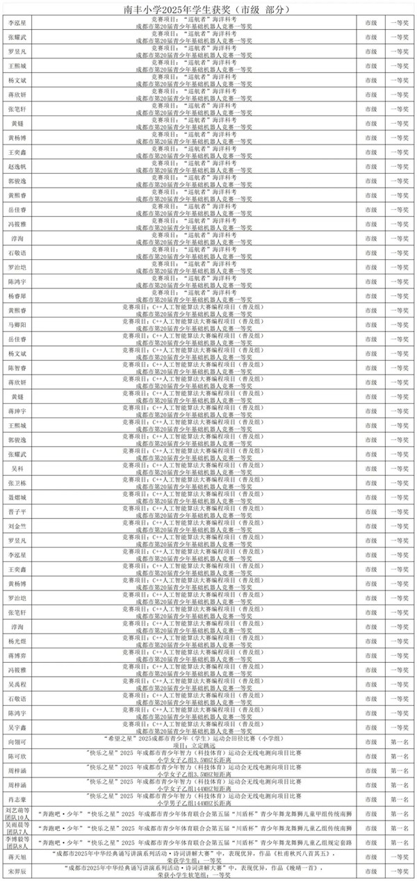 在“诗意学校 诗意教师 诗意少年”的办学目标下,南丰学子全面发展、活力绽放,全年斩获各类奖项250项!其中国家级32项、省级89项、市级86项、区级42项。