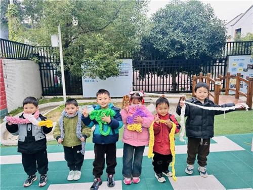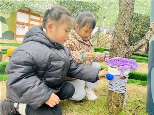 此外,孩子们还将关爱延伸到了幼儿园的大树小树上。他们利用编织的围巾,给大树小树都围上了彩色围巾。看着穿上“花衣服”的树,孩子们开心地拍手欢呼起来。