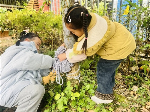 修补暖棚+为树围脖,成南幼儿园萌娃暖冬传爱践初心!