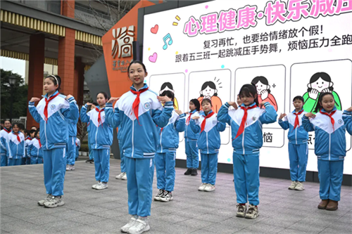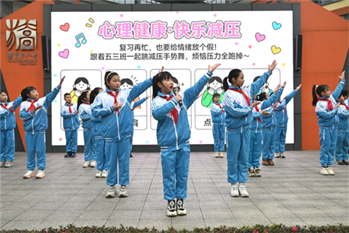 复习再忙,也要照顾好情绪。五年级三班带来的“减压手势舞”,跟着音乐动一动,烦恼和紧张瞬间跑光。