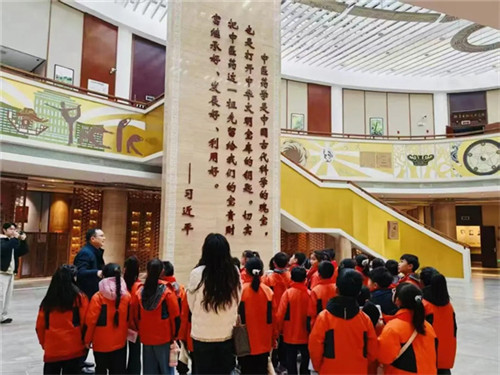 活动伊始,师生们来到四川省中医药博物馆。馆内丰富的中医药典籍、传统诊疗器具和珍贵标本,让孩子们仿佛穿越时空,走进中医药文化的历史长河。从古代名医的智慧到现代中医药的发展,从“望闻问切”的诊疗方法到“药食同源”的生活理念,一个个生动的故事让传统文化变得鲜活而有趣。孩子们在观察中思考,在聆听中感悟,对中医药文化的深厚底蕴有了更直观的认识。