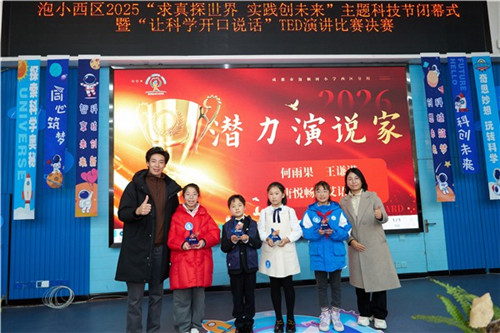 1月14日,成都市泡桐树小学西区分校(以下简称:泡小西区分校)“求真探世界 实践创未来”主题科技节闭幕式暨“让科学开口说话”TED演讲比赛决赛顺利举行,为历时数周的校园科技节画上圆满句点。