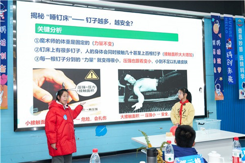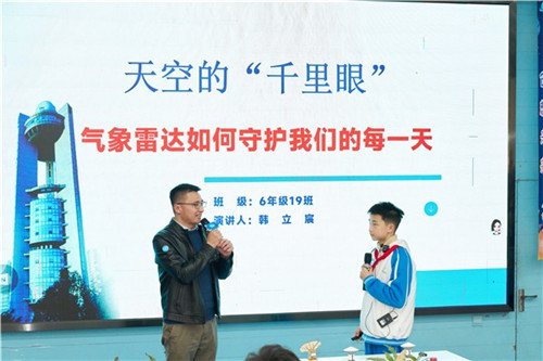 六年级的原理破译者展现了更深的思辨。6年级13班何雨果和同学化身“科学侦探”,用压强知识破解“钉床碎大石”谜题;6年级19班韩立宸和爸爸解读气象雷达的“彩色回波密码”,展现科技守护生活的温度;6年级15班张奕尘和爸爸通过3D打印演示,让“增材制造”将创意变为现实。