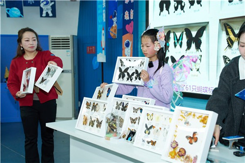 四年级的生活科学家则将目光投向身边。4年级13班唐悦畅用碘伏与维C的变色反应,演示氧化还原反应的化学魔术;4年级2班罗浠月和妈妈揭秘大海“蓝眼泪”的发光原理与生态意义,用小实验串联海洋浪漫与科学真相;4年级23班罗梓萱和妈妈以蝴蝶一生为线索,讲述生命科学与自然的联结,并现场完成蝴蝶标本制作,让科学触手可及。