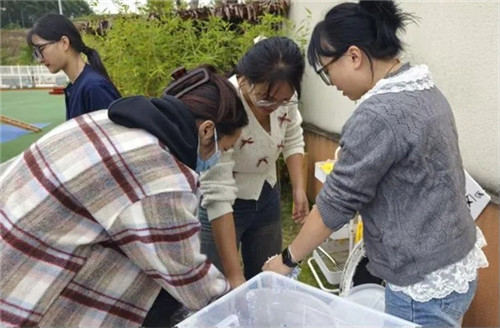 在理论基础上,教研组开展了多次体验式教研。联合后勤部门,教师们走进堆肥角,亲身参与材料分类、堆体搭建、湿度调控等全过程,在实践中发现问题、优化流程。通过定期现场观摩与研讨,教师们逐步掌握了堆肥活动的组织策略与支持方法,提升了大家的活动设计与现场指导能力。