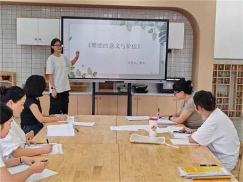 教研组首先聚焦理论学习,先后围绕《堆肥的意义与价值》《如何堆肥》等内容展开系统学习。通过理论学习,教师们不仅理解了堆肥对幼儿环保认知、科学探究与劳动教育的多重价值,更解决了“堆肥活动教育目标不清晰”和“各年龄段活动内容区分度不足”两大核心问题,为后续实践提供了坚实的理论支撑。