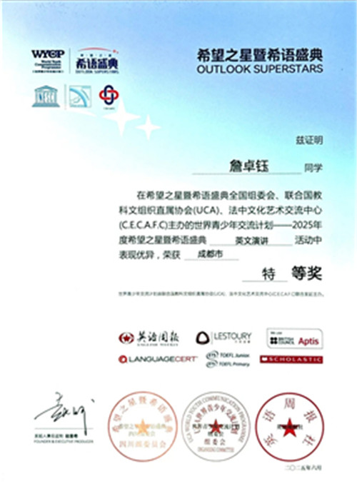 近年来,学生在各类演讲、竞赛与国际交流活动中屡创佳绩,彰显出优秀的语言运用能力和综合素养。面向2026,英语组将持续推进课堂转型与课程创新,助力每一位学生成长为既具家国情怀、又怀国际视野的自信少年。