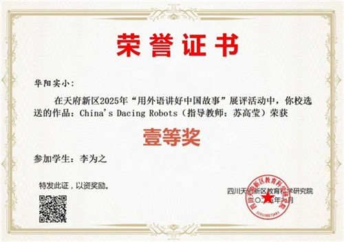 近日,天府新区2025年外研版小学英语课堂教学大赛评选结果揭晓,四川天府新区华阳实验小学(以下简称:华阳实小)廖洋老师执教的三年级上册Unit 5 We’re family第二课时荣获一等奖。这不仅是对教师个人素养的肯定,更是华阳实小英语组紧跟新课标精神、持续深化课堂改革成果的生动体现。