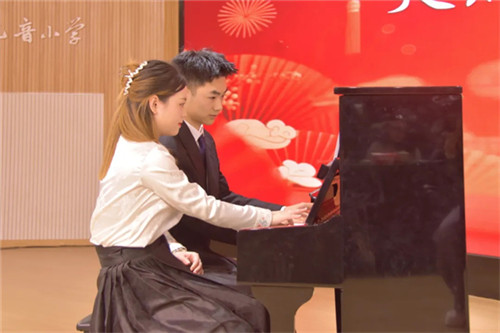 展演中,吴俊毅老师担任民歌钢琴伴奏,与郑咏琪老师婉转清亮的唱腔完美融合,悠扬琴声搭配动人歌声,将中国民歌的韵味展现得淋漓尽致。二人随后合作的钢琴四手联弹《春节序曲》,以明快激昂的旋律勾勒出阖家团圆、喜迎新春的美好画卷,满溢的年味儿感染了全场观众,再次将展演推向高潮。