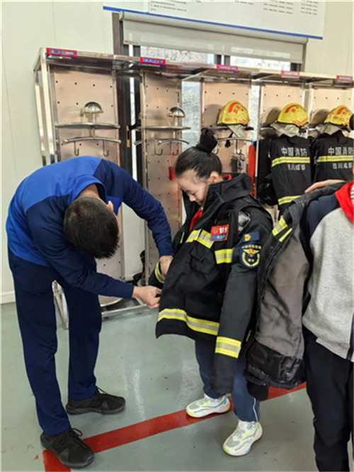在消防员的保护和指导下,孩子们轮流试穿消防服、登上消防车,亲身感受这份职业的荣光与艰辛。