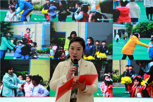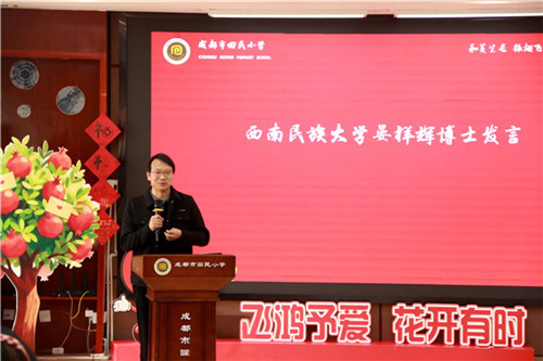 会议核心环节,成都市回民小学书记、校长陈绍光以《持真致善·追光实践》为主题,作新学期工作部署。
