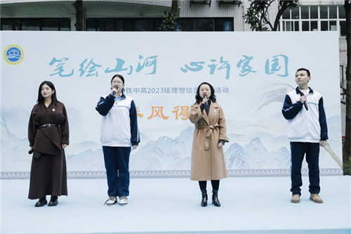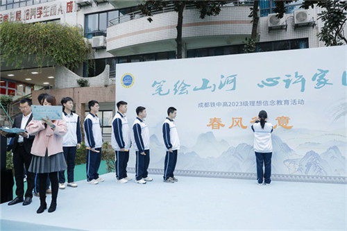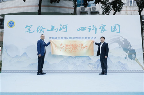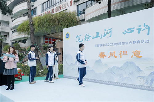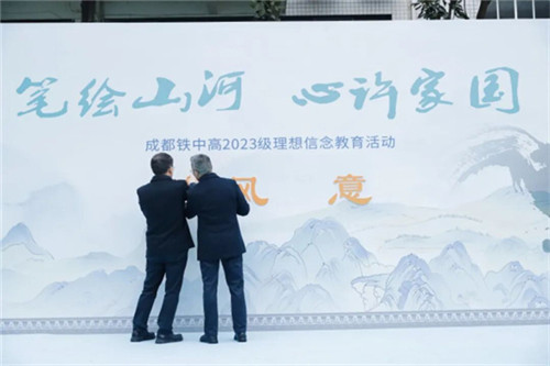 春风浩荡,战鼓催征。当“刚健守正”的铁军精神遇上“留白待书”的青春画卷,一场关于理想信念的深刻对话在成都市铁路中学(以下简称:成都铁中)校园内展开。2026年2月28日,成都铁中高2023级“笔绘山河,心许家国”理想信念教育活动以一副特殊的“山河图”为媒介,让全体高三学子在墨韵山河间,完成了一次从“立志”到“立人”的精神洗礼。