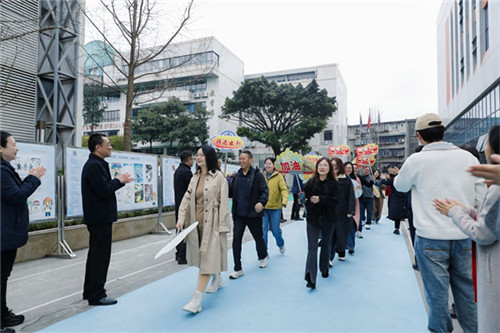成都铁中副校长易德永(左一);成都铁中副校长、梧桐分校负责人朱德明(右一)