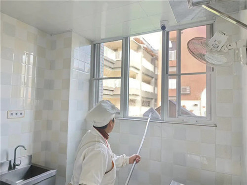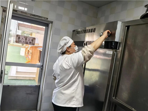 厨房作为食品安全重地,工作人员对厨具、操作台、储物柜、地面墙面进行深度清洁消毒,严格把控食品加工环境,守护孩子们“舌尖上的安全”。