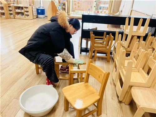 寒冬辞旧岁,骏马迎新年。时光匆匆,岁月如梭。新学期,新起点,在全体教职工的共同努力下,幼儿园营造了洁净、安全、温暖的开学氛围。以崭新的面貌和满“心”的关爱,“净”待孩子们回家!(江蕾)