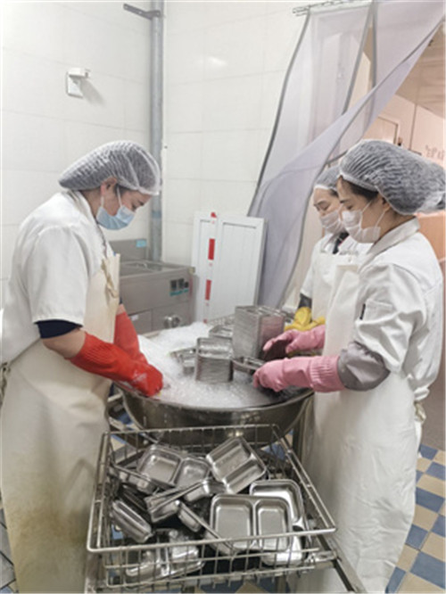 从蒸箱、锅、灶等大型厨具的深度除垢,到餐盘、汤碗等细微餐具的高温消杀;从食材储存间的分类规整,到操作台面的无死角擦拭,每一个环节都细致入微,每一处角落都不留盲区。工作人员严格遵循食品卫生规范,对各类设备进行调试检修,对食材采购渠道再次核查,让“舌尖上的安全”有迹可循,确保孩子们新学期的每一餐都新鲜、营养、放心。