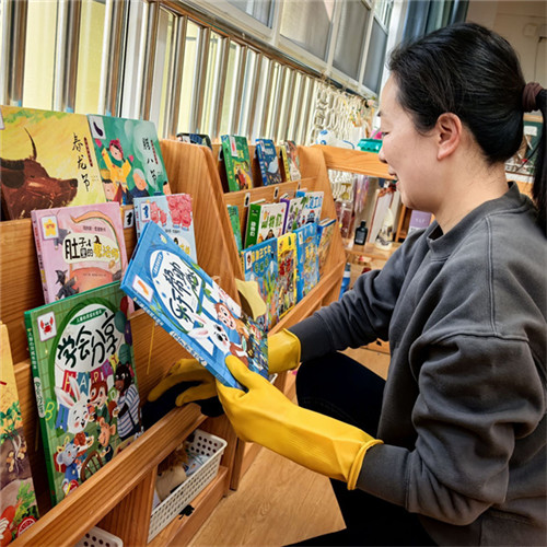 第一步是“净”——桌椅板凳擦拭得锃亮,玩具教具经过清洗消毒后分类归位,床铺被褥晾晒平整、叠放有序,卫生间的瓷砖、洗手台被刷洗得一尘不染。第二步是“美”——结合春季主题与地域特色,老师们精心设计墙面环创:灵动的花草剪贴、充满童趣的成长树、孩子们的旧作新展,每一面墙都变成了“会说话的教育阵地”。温馨的氛围、鲜活的创意,让每一间教室都充满了迎接新学期的欢喜。