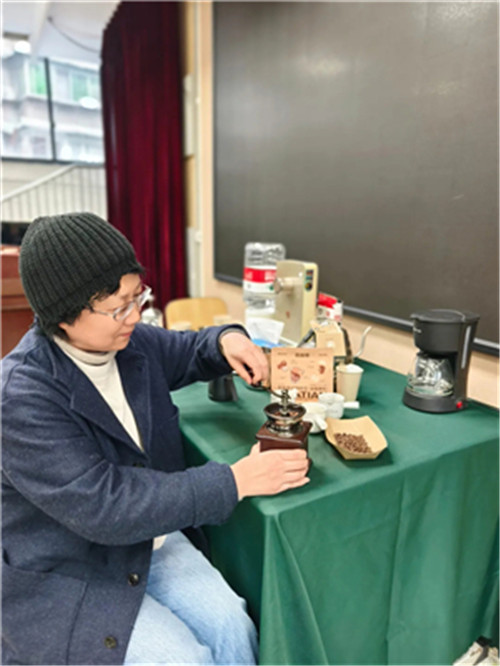 “叮叮当当”的咖啡豆碰撞声中,老师们亲手研磨咖啡粉,感受颗粒在指间流转的质感。从称豆、磨粉到注水、闷蒸,每一步都充满仪式感。当热气袅袅升起,第一杯亲手冲泡的咖啡递到手中时,苦涩与甘甜交织的滋味,恰似教育路上的耕耘与收获。有老师笑言:“原来最治愈的冬日饮品,是自己磨的这一杯啊!”