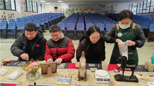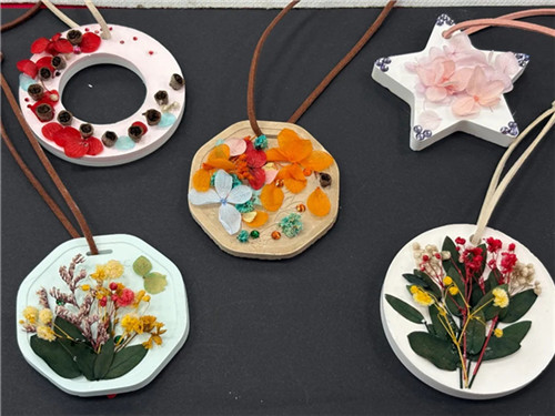 活动还为老师们准备了香薰片DIY环节。调色、塑形、滴入精油,一块块素白的石膏在手中逐渐变成精致的扩香牌;老师们在素白的石膏牌上用干花、亮片、咖啡豆加以点缀,创作出属于自己的香薰片。当清新的柑橘香或温暖的木质香弥漫开来,整个空间都变得柔软而治愈。