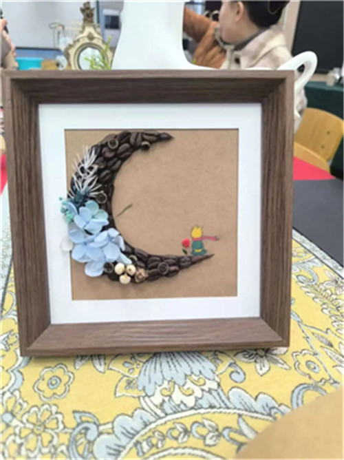 活动现场,老师们化身“咖啡艺术家”,用不同产地的咖啡豆拼贴出独一无二的画作。深褐色的豆粒在卡纸上跳跃,或勾勒出校园的轮廓,或拼成一朵绽放的花,每一幅作品都藏着对生活的热爱与巧思。当咖啡的香气与艺术的灵感碰撞,平凡的豆子也成了传递温暖的媒介。