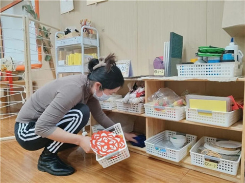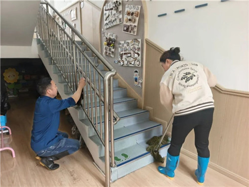 保育老师们以最饱满的热情投入到校园清洁消杀工作中,化身校园的“美容师”与“守护者”,对园区室内外各个角落展开全方位、无死角的清扫。