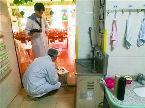 幼儿园特邀专业第三方除害公司,对全园开展规范化除四害作业。工作人员针对教室角落、午睡室缝隙、食堂周边、户外绿化带等重点区域,采用安全环保药剂进行精准消杀,并规范设置防害设施,从源头阻断蚊虫、鼠蟑等有害生物滋生,为孩子们撑起坚实的健康防线。