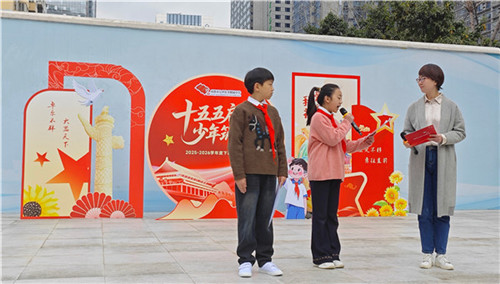第二篇章“扬少年志气”将活动推向高潮。成都市七中育才附属小学锦官驿校区书记程科携手六年级学生崔一一、敬馥瑞,诠释“十五五启航·少年筑基”这一核心主题。
