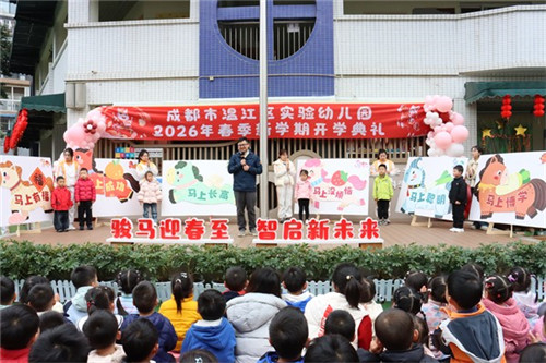 春意盎然启新篇,萌娃归来乐满园。2026年3月2日,成都市温江区实验幼儿园全体师幼与家长代表欢聚校园,举行“骏马迎春至,智启新未来”主题开学典礼。活动融入AI趣味元素,在温馨朝气的氛围中,开启新学期智能伴学的全新篇章。