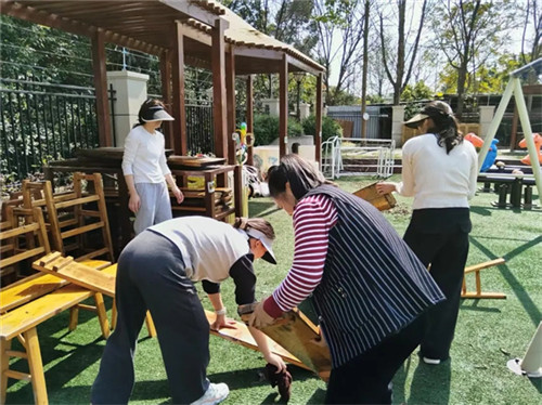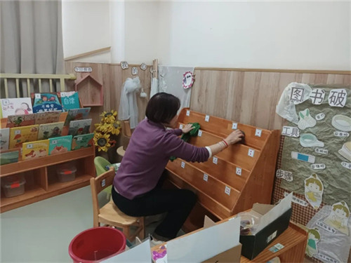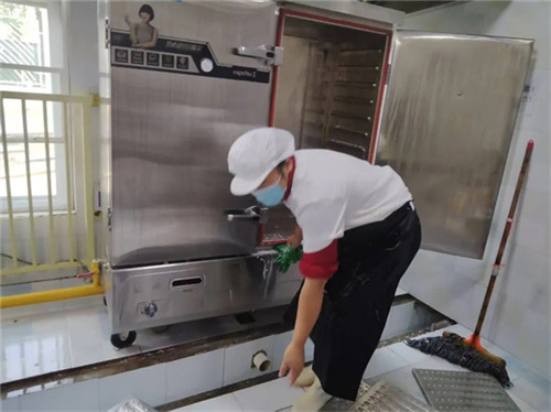 老师们对园内大型玩具、户外操场、走廊等区域及设备设施进行全面细致的清扫、消毒。班级是幼儿活动的主要场所,老师们对教室桌椅、窗户、窗帘、水龙头、卫生间等区域进行了全面、细致的清洁,为幼儿撑起卫生安全的保护伞。为了给孩子们提供一个安全、卫生的饮食环境,厨房的阿姨们进行了全面的清洁消毒工作。