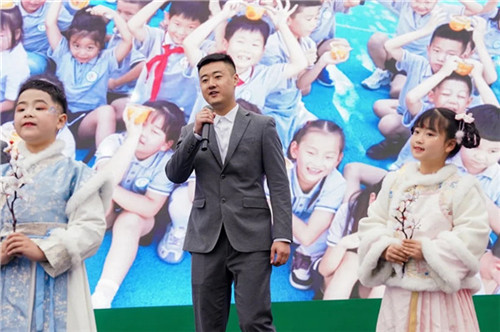 仁里小学校长马志致辞。他表示,全体教师将化关怀为动力,以立德树人为己任,努力办一所学生向往、家长满意、社会认可的高品质学校。