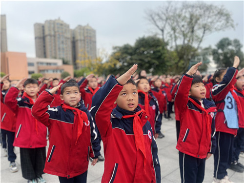 伴随着激昂的出旗乐曲,全体师生肃立注目。在雄壮的国歌声中,五星红旗冉冉升起,少先队员们高举右手,向国旗致以最崇高的敬意。这一刻,爱国情怀在每一个繁小学子心中扎根。