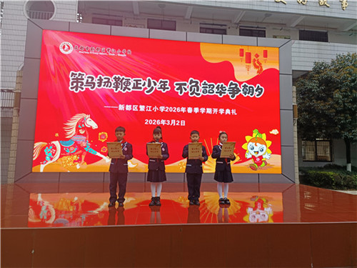 2026年春季学期的第一天,成都市新都区繁江小学的校园里洋溢着蓬勃朝气。一场以“策马扬鞭正少年,不负韶华争朝夕”为主题的开学典礼,为全体师生拉开了新学期的序幕。