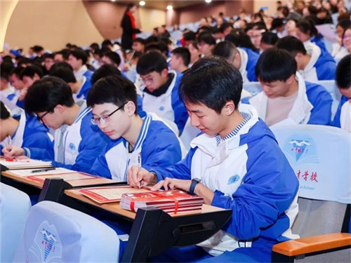 誓言既出,一诺千金。在全体师生的见证下,同学们郑重地在《百日冲刺承诺书》上签下了自己的名字。这一笔,签下的是对自己的承诺;这一诺,许下的是对未来的责任。这一刻,梦想与行动紧紧相连。