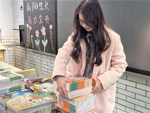 一本本新书传递下去,油墨香在指尖流淌。有人迫不及待翻开扉页,工工整整写下名字;有人轻轻抚平书角,小心放进书包;还有人悄悄闻了闻,露出满足的笑。