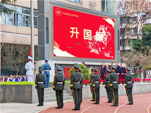 随着主持人宣布典礼正式开始,两校区开启典礼第一项升旗仪式,五星红旗迎着晨风冉冉升起,全体师生肃立注目,雄壮的国歌声响彻校园,庄重的仪式感中,满是对新学期的向往。