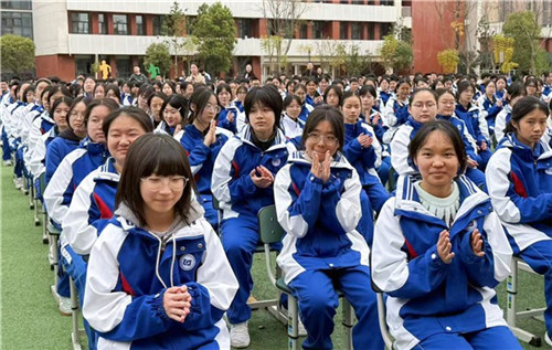 随后,两校区的师生代表依次发言。三友路校区高三(7)班的王子轩同学,道出了备考学子的坚定决心,喊出“不负韶华,不负自己”的青春誓言。安宁河校区高一(5)班的黄馨儀同学分享了新学期的成长规划,字里行间满是朝气与锐气。