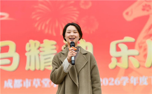 春启新章,万物向光;策马扬鞭,未来可期。成都市草堂小学校长郑松涛在新学期寄语孩子们:“借马年奔腾之劲,乘春风、踏新途,心怀目标,做有理想的追梦人,脚踏实地,做能坚持的实干者,勇于突破,做敢超越的奋进者,在子美校园勤学善思、笃行不怠,用努力成就进步,用拼搏书写精彩,在成长的道路上追光而行。”