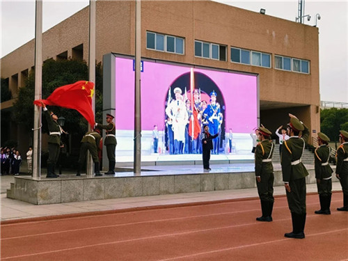 在庄严的升旗仪式上,鲜艳的五星红旗冉冉升起。全体师生肃立注目,齐唱国歌,嘹亮的歌声响彻校园,彰显着新科人昂扬向上的精神风貌与赤诚的爱国情怀。