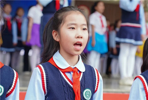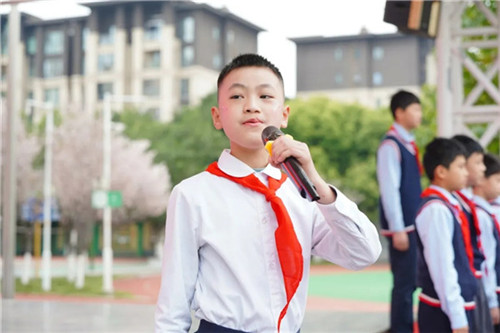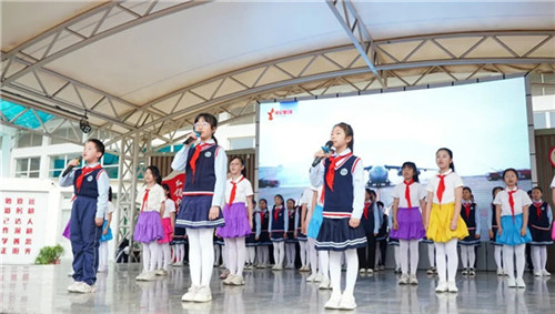 典礼伊始,学校大队干部登台献唱《心同此愿》。清越童声如春涧奔流,唱出了少年同心、共赴前程的赤诚,为新学期增添了一抹亮丽的色彩。