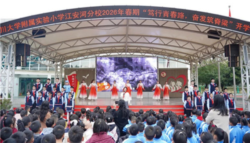 3月2日上午,四川大学附属实验小学江安河分校全体师生齐聚校园,举行“笃行青春路 奋发筑脊梁”2026年春期开学典礼。岁在丙午,马年奔腾,全校师生以昂扬之姿,共赴这场春日的盛会。