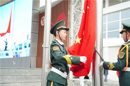 国歌嘹亮,气势澎湃,五星红旗在国歌声中冉冉升起。千余道目光追随着那一抹红,赤子之心与朝阳同升,家国情怀在胸中激荡。