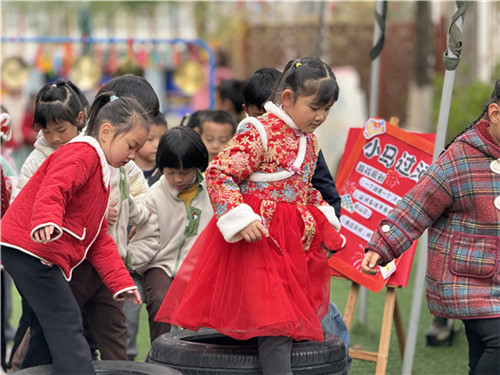 短暂的早点时光后,最让宝贝们期待的“百米纳福”游园闯关活动正式开启!幼儿园精心设置8个趣味游戏点位,每一个游戏都融入身体感知、动作锻炼的元素,更暗藏自我保护的小知识,孩子们在闯关中锻炼能力、收获快乐,也悄悄学会关注自己的身体、保护自己。