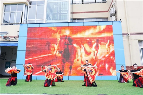 开学典礼在气势磅礴的《万马奔腾》乐曲中正式拉开帷幕。