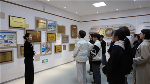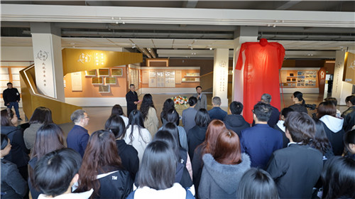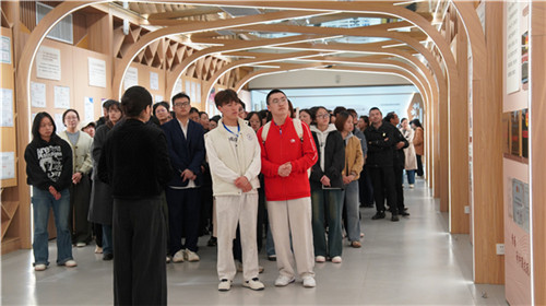 揭幕仪式结束后,全体领导、中层干部及学生代表在讲解员的带领下,有序参观了两个展陈。大家认真聆听讲解,不时驻足凝视、交流探讨。师生代表们通过参观展陈,不仅加深了对学校的了解与热爱,也增强了专业认同感与学习动力。(王俊 陈虎 荣慧 季群岭 谭璐)