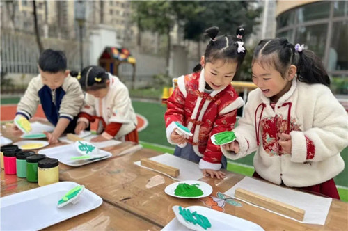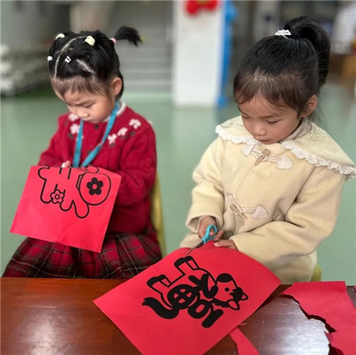 剪福字、印新春、绘心愿、团汤圆、画春梅、染彩布……每一个角落,皆是欢声笑语。