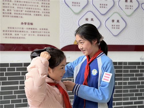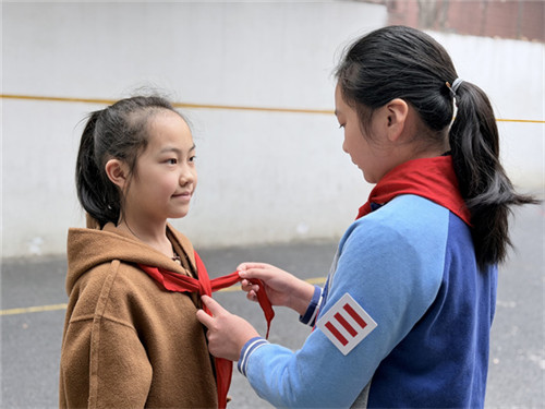 清晨的第一缕阳光下,大队委们已守候在校门口。他们微笑着引导同学整理衣冠、规范敬礼、主动问好。一声问候,一个队礼,勾勒出校园最温暖的画面。雷锋精神中的文明有礼,化作孩子们举手投足间的自觉。那是敬队礼时笔挺的身姿,是问好时明媚的笑容,更是彩虹少年昂扬向上的精神写照。