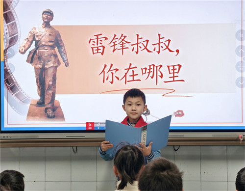 在“雷锋故事我来讲”活动中,一、二年级学生自主搜集雷锋事迹,在班级分享会上倾情讲述。专注的眼神、生动的表达,让雷锋精神如春风化雨,悄然浸润童心。一颗颗奉献与关爱的种子,正在讲述与聆听中生根发芽。