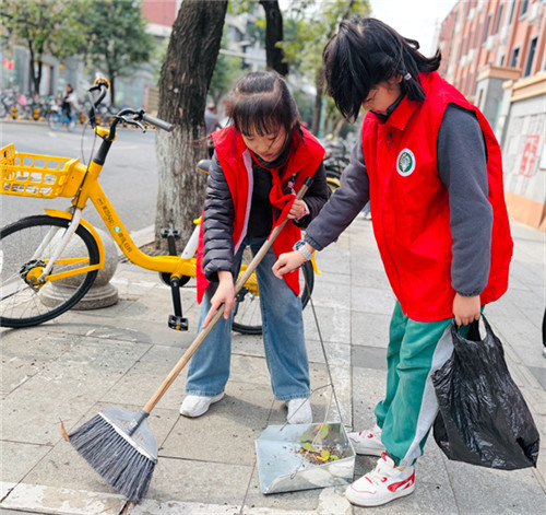 活动当天,在老师的带领下,少先队员志愿者们分成一个个小队伍,开启了志愿服务之旅,每一个小身影都充满了干劲儿。